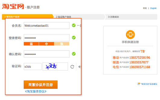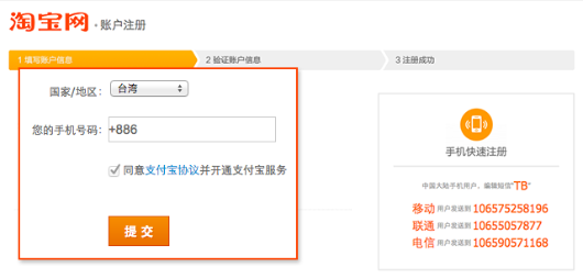 淘寶網支持台灣用户註冊,過程簡單,2分鐘即可完成。一經註冊,即可於淘寶網上進行購物。