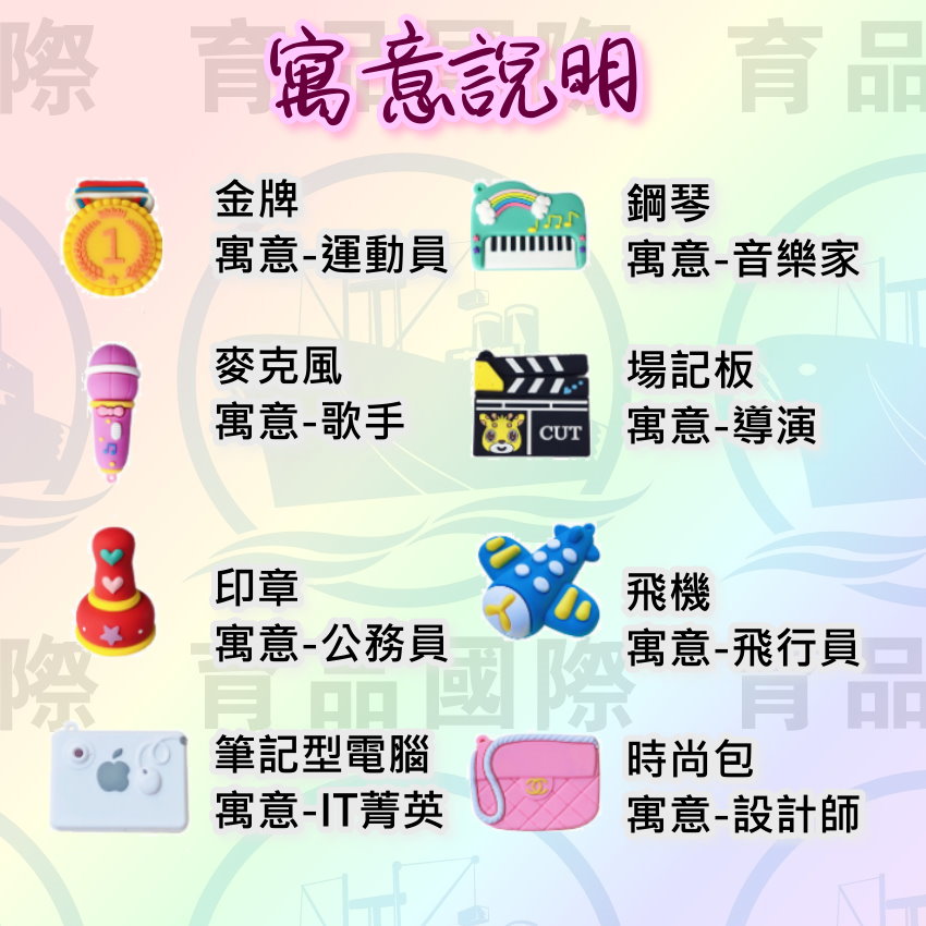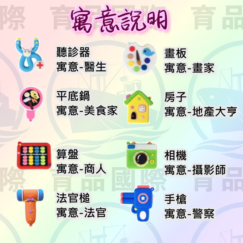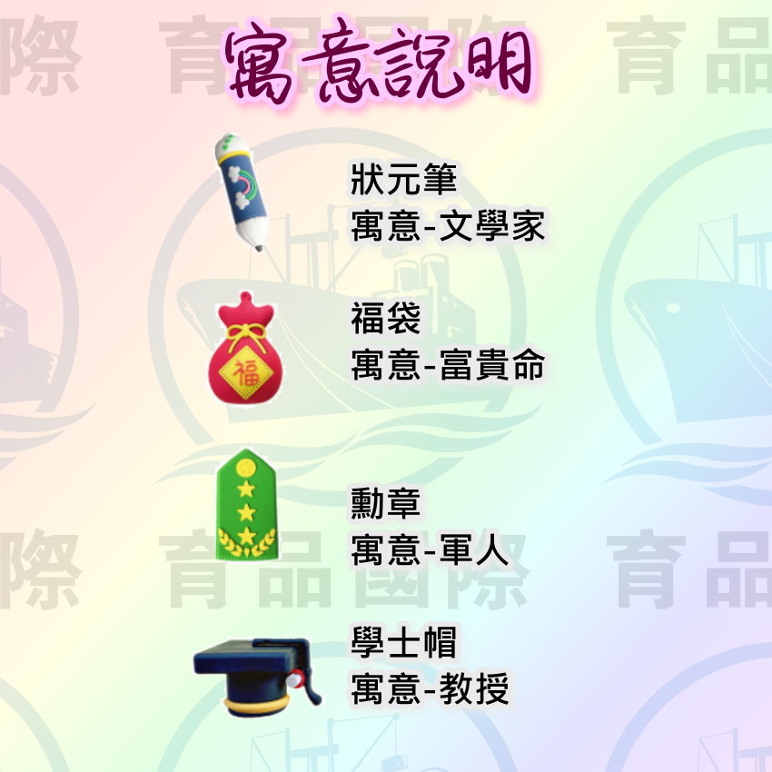 【圖片中的"吊飾*3"意旨會送3個吊飾扣把抓周物製作成吊飾】