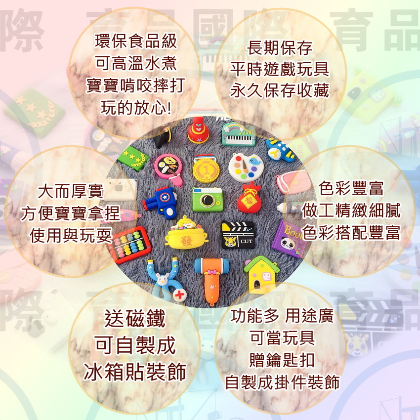 環保安全材質,抓周樂趣又安心,食品級矽膠環保材質,環保材質O環保矽膠即寶寶的牙膠材質,